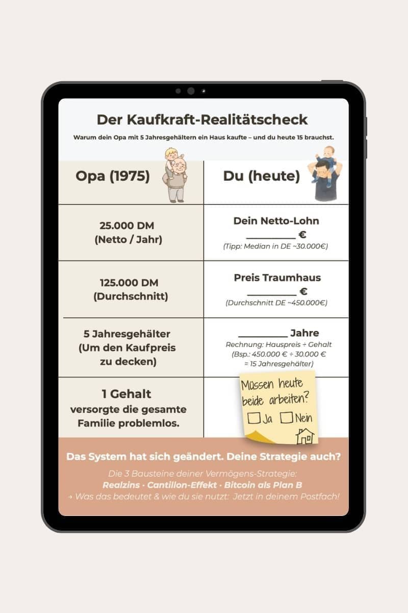 Berechne in weniger als 2 Minuten, wie viele Jahresgehälter du heute wirklich investieren musst – und warum der Vergleich zu 1975 so notwendig ist.